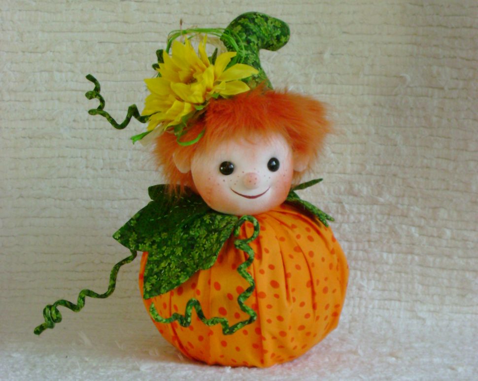 K mojej tvorbe z jesennej tématiky nevyhnutne patria tekvičky. Jednou z nich je Tevička Eliška, ktorú, ak máte chuť, môžete aj vy vlastnoručne ušiť a vytvoriť tak krásnu jesennú dekoráciu pre seba, alebo pre niekoho, komu ňou urobíte radosť.